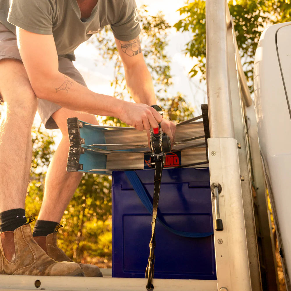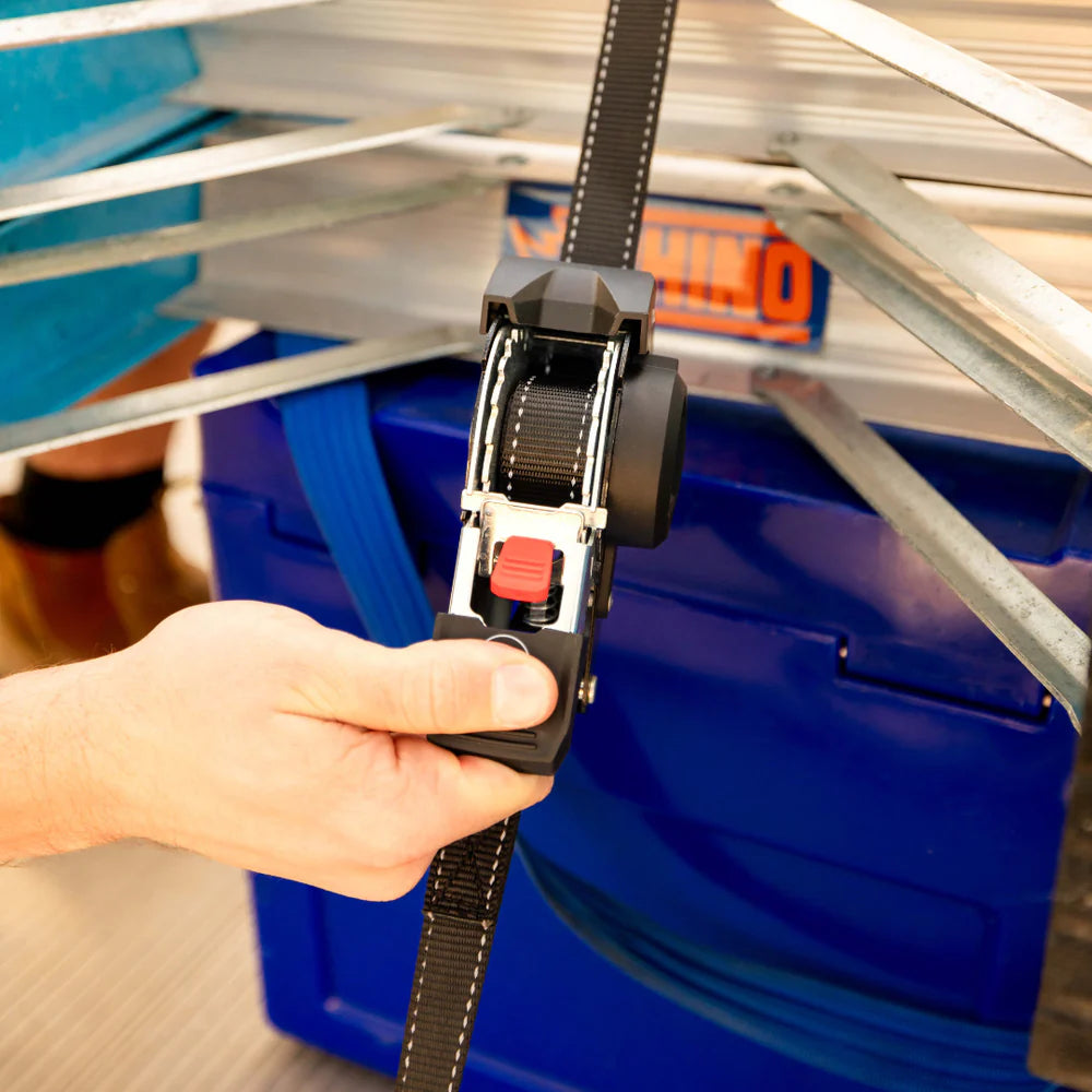 We're helping hardworking locals free up time during their busy days. The Auto-retract ratchet straps gets any job done in a few seconds. Tying down a load on the roof? No help? No problem! Extend, latch, tighten, and release with ease.